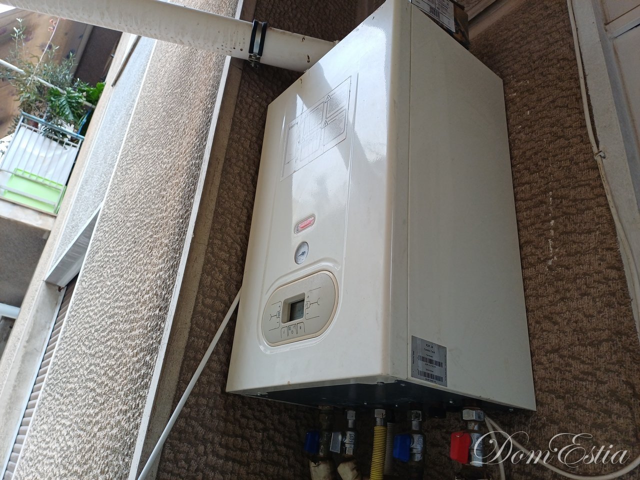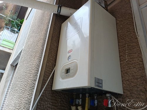The house has autonomous heating with a natural gas boiler and three air conditioners.